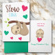 Les enfants vont adorer cette jolie carte paresseuse de Saint Valentin ! Sur le devant, le paresseux endormi est accroché à une branche aux coeurs turquoises et roses tout autour. Le texte dit "Ralentissez". L'intérieur de la carte comporte plusieurs champs de texte personnalisés que vous pouvez laisser tels quels ou modifier si vous le souhaitez. Il y a aussi une autre image de l'adorable paresse tenant un coeur rose vif. *Crédit photo : PrettyGrafik.com.
