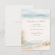 Annoncez votre mariage avec une élégance côtière intemporelle. Cette carte de sauvegarde de date de mariage sur le thème de la plage comporte une scène océanique à l'aquarelle douce avec des tons de sable chaud, des accents délicats de coquillages et une typographie raffinée inspirée des célébrations romantiques au bord de la mer.