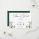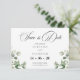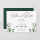 Annoncez votre mariage avec style avec notre carte de sauvegarde de date moderne à la verdure d'émeraude. Avec un magnifique design aquarelle de feuilles d'eucalyptus associées à de délicates fleurs de jasmin, cette carte complète parfaitement votre thème de mariage verdure ou aquarelle. Son élégance intemporelle et inspirée de la nature garantit que vos invités marqueront leurs calendriers pour votre jour spécial.