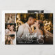 Budget Moderne, Elégant Mariage à la main (4) Photo Collage Merci personnalisé abordable carte à bas budget THIN. Élégant modèle mariage avec quatre photos sur le devant et une photo sur le dos. ***VEUILLEZ NOTER! *** LE DOCUMENT BUDGÉTAIRE/VOL EST MINCE. *** METTRE À NIVEAU LE PAPIER POUR UN PAPIER PLUS ÉPAIS. *** Avec le texte "Merci" dans un tourbillonnant script de typographie écrit à la main superposé avec des swashes en couleur blanche. Petit coeur entre les noms. Si vous préférez écrire votre note à la main, supprimez simplement l'exemple de texte pour gagner de l'espace. Personnalisez le nom personnalisé et le message de remerciement. Si vous avez besoin d'aide ou d'un article correspondant, veuillez contacter le concepteur !