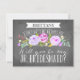Demandez à votre servante d'accueil une belle carte qui dit "Je ne peux pas dire "Je ne peux pas" sans vous." Cette carte de femme de chambre présente de jolies fleurs aquarelles et un mélange de typographie moderne, le tout sur un arrière - plan de tableau noir branché. Faites en sorte qu'il soit facile pour eux de dire oui avec cette belle et élégante carte. Disponible en version femme de ménage d'honneur, matron d'honneur, demoiselle d'honneur junior, et fleurs filles. Dites merci avec une carte de remerciements correspondante.