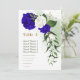 élégant personnalisable tableau de sièges numéro carte bleu royal et fleurs blanches avec quelques feuilles verts et parties scintillant d'or numéro carte