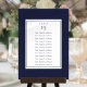 Cet élégant tableau de sièges bleu marine présente le plan de sièges de vos invités. Conçu par Thisisnotme©
