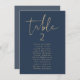 Ce tableau de sièges numéroté est doté d'une police manuscrite pointue et d'un design minimaliste moderne, alliant bleu marine et or. Modifiez facilement le numéro et les noms ainsi que toutes les couleurs pour correspondre à votre événement.