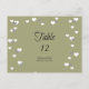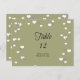 Des petits coeurs blancs et gris argenté flottent sur un joli arrière - plan doré, ils mettent en avant cette carte de sièges de table. Customisez en modifiant le numéro et en ajoutant au panier, puis répétez pour chaque numéro.
