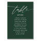Emerald Green Calligraphie simple Mariage rustique Sièges Numéro du tableau