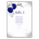 royal bleu & argent fleurs avec assise carte numéro de table carte
