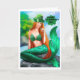 Sirène irlandaise aux longs cheveux cuivrés et à la queue verte, au haut et au chapeau tenant un trèfle