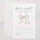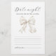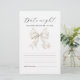 Cette carte d'insertion de "soirée de date" de fête de fiançailles présente un simple design de nœud blanc parfait pour les fêtes de fiançailles "elle noue le nœud".