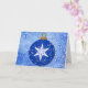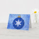 OEuvre d'art originale composée d'un ornement de Noël de style graphique avec une étoile d'inspiration vintage dans les tons bleus, posée sur un arrière - plan d'étoiles bleues dans un motif fantaisiste. La carte est munie d'une bordure d'une texture glacée tout autour, ce qui fait une jolie carte festive. À l'intérieur de la carte déclare : "Que la saison de Noël remplisse votre coeur et votre maison de joie maintenant et tout au long de l'année à venir!" pour un accueil chaleureux de Noël à tous. Vous pouvez ajouter plus de texte que vous le souhaitez ou laisser tel quel !