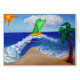 (Le tableau est d'un ange vert sur une planche de surf orange attrapant une vague. Un soleil brille dans l'arrière - plan et un palmier coule doucement sur la plage. La vague se prépare à s'écraser sur la plage en lissant la surface sablonneuse. L'ange vert rend hommage à l'Archangel Raphael dont la couleur est verte et est connu pour apporter la guérison. Le soleil aide à maintenir la vie et à travers elle les plantes comme les palmiers se renforcent et poussent. La puissance de l'énergie solaire est symbolisée dans la planche de surf orange-jaune appariée. La plage est propre et lisse. Ce tableau a été inspiré par "Effacer l'ange du cancer". Au lieu d'ajouter du texte de ce tableau, il a été laissé ouvert afin que vous puissiez vous effacer, surfer sur la vague, ou d'autres aller avec le message de flux à la plage, nuage, ou ciel.