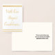 Cette carte de voeux personnalisable et de base en feuille d'or est dotée du message "With Our Deepest Condolences..." sur le devant, accompagné d'un message personnalisable à l'intérieur. Une carte comme celle-ci pourrait peut-être être utilisée pour offrir de la sympathie à quelqu'un qui a subi une malchance.