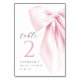 Ajoutez une touche d'élégance à vos tables de douche nuptiales avec cette carte chic de table arc rose. Doté d'un script manuscrit romantique, de tons doux et d'une conception coquette sophistiquée, cette carte est parfaite pour les numéros de table, les réglages de place ou l'étiquetage des zones spéciales lors de votre événement.