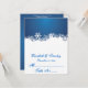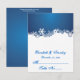 Carte de table de mariage hivernal bleu et blanc flocon de neige, avec une bordure blanche de flocons de neige sur fond bleu lumineux. Un choix parfait pour les mariages de décembre hivernaux.