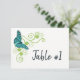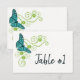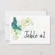 Nommez vos tables de réception avec une carte de table Turquoise Butterfly Floral Reception. La carte de table présente un papillon turquoise reposant sur un vert vif fleuri et fleuri. Papier à lettres mariage supplémentaire disponible avec cette conception aussi.