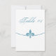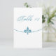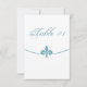 Numérotez vos tables de réception avec une carte de table de réception Teal Fleur de Lis. La conception de la carte de table comporte un fleur de lis sarcelle. Du papeterie de mariage supplémentaire est disponible avec ce design également.