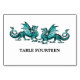 Parfait pour un imaginaire sophistiqué jeu de table mariage à thème est cette Elegant Dragons Mariage carte numéro de table avec une paire vibrante de dragons turquoise. Facile à customiser, il suffit d'ajouter le ou les numéros de table appropriés dans le champ de texte fourni. Cliquez sur "Customiser" pour trouver d'autres options de personnalisation.