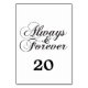 Carte de numéro de table Toujours et Forever Mariage, tendance et élégante, avec une belle conception de texte de typographie manuscrite en noir et blanc. Cette carte de table simple et élégante donne le ton à un mariage de classe et romantique et est facile à customiser avec le(s) numéro(s) de table approprié(s). Cliquez sur "Customiser" pour trouver d'autres options de personnalisation. La couleur Arrière - plan peut être changée en n'importe quelle couleur.