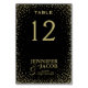 Une carte de table noire arrière - plan avec une "fausse parties scintillant" d'or confetti oeuvre idéale pour un mariage, cependant, vous pouvez également changer le texte pour toutes les occasions. (N'oubliez pas de commander chaque numéro de carte individuellement, vous pouvez également changer la couleur de l'arrière - plan. ) Notez qu'il s'agit d'une impression graphique et ne contient aucune parties scintillant désordonnée. Organisez un événement merveilleux !