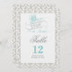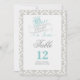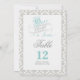 Numéro de table recto-verso Once Upon a Time sur fond damassé avec un thème aqua, gris, blanc et noir.