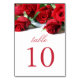 Belle et élégante carte de table en rouge et blanc avec roses rouges.