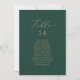 Ces délicates cartes de sièges en or et en vert sont parfaites pour un mariage moderne. Le design minimaliste romantique présente une belle et élégante typographie de champagne jaune doré sur un arrière - plan vert émeraude à l'allure simple et épurée. La carte s'imprime à l'avant et à l'arrière (double face).