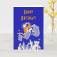 Le design provient d'une affiche théâtrale vintage où se trouve un homme faisant du moquette magique au-dessus des châteaux. Le graphisme a été réalisé par l'artiste Richard Halls, créé en 1936 ou 1937 et parrainé par le Federal Theatre Project (New York, N.Y.). Cette affiche a été créée pour une présentation de "A Hero is Born" d'Andrew Lang au théâtre Adelphi, 54ème rue à l'est de la 7ème Avenue à New York. Sur cette carte de voeux, seul le design est utilisé pour créer un salut d'anniversaire heureux. Vous pouvez modifier le libellé de cette carte.