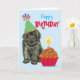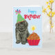 Bonne fête d'anniversaire avec ce design mignon avec un petit chiot de Terre-Neuve vêtu d'un casquette de fête avec un cupcake d'anniversaire. Le texte peut être facilement changé; il suffit de cliquer sur le bouton personnaliser.