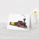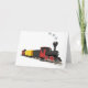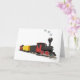 Carte de voeux avec un train de jouet arrivant sur l'avant, partant sur le dos. Perfectionnez pour l'anniversaire d'un enfant.