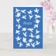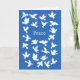 A Greeting Card for Passover, with white doves on a blue background, and the word 'peace' on the front cover. The inside greeting, which you can change or delete, c'est Happy Passover. From a handpainted paper collage par Judy Adamson.