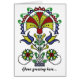 La conception "de tulipes d'o de pot" est inspirée par des images traditionnelles de "Fractur" de Néerlandais de Pennsylvanie. La tulipe rouge centrale, signifiant habituellement la foi, espoir ou charité, a un éclat vibrant des motifs et les couleurs - jaunissez pour le corps et l'esprit et la connexion sains à Dieu, rouge pour la passion, le charisme, la convoitise et la créativité, bleues pour la protection, la paix et le calme, les rayons du vert pour la croissance, la fertilité et le succès dans la vie. Deux assortissant des tulipes bleues et jaunes au-dessous de ceci et un ensemble de vert, les marguerites jaunes et rouges, réminiscentes de la roue du motif de sortilège de roue de fortune ou de Sun, représentent la foi, l'espoir, la chaleur et la fertilité. Noircissez, en symbolisant la protection, accent et liez la conception ensemble tandis que le sujet d'ensemble "se développe" du pot/du panier bleus de damier sur le fond.