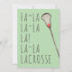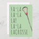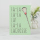 Carte de voeux de Noël de crosse avec un design de bâton de farniente et les lignes originales "Fa La Lacrosse" et "Merry Lax-mas". Modifiez le texte pour personnaliser facilement.