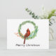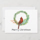 Ce doux design de vacances est propre et frais. Sur fond blanc, cette délicate couronne de feuillage persistant est décorée d'eucalyptus et de baies rouges. Au bas de la couronne, il y a un cardinal rouge. Au dos de la carte, il y a une zone de texte qui vous permet d'ajouter votre propre message de vacances. Si vous préférez, vous pouvez supprimer la zone et écrire votre message.