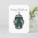 Carte de vacances à plat représentant un vase en chinoiserie avec un nœud vert. Souhaitez à vos amis et à vos proches un Joyeux Noël avec cette belle carte.