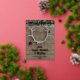 Des bois de cerf festifs ornés de boules sur un fond en bois rustique avec du lierre qui traîne au-dessus. Ajoutez simplement le nom de votre famille et votre vœu de vacances - véritable feuille d'aluminium