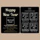 Bonne année ! Un nouveau départ. Un nouveau départ. Fêtes pour célébrer ce Janvier et pour annoncer aussi votre entreprise. Carte de vacances personnalisable en feuille que vous pouvez mettre votre marque d'affaires, vos produits ou services et avec l'accueil du Nouvel An. Vous pouvez mettre jusqu'à 4 produits. Customisez-le et utilisez-le comme matériel marketing pour annoncer votre marque et promouvoir vos produits ou services d'affaires. Carte de vacances Foil que vous pouvez utiliser pour construire la sensibilisation de marque. Les couleurs design sont du papier doré et des textes blancs sur arrière - plan noir. Pour customiser cette carte de vacances, téléchargez votre logo d'entreprise, des images de vos produits ou services, tapez votre nom d'entreprise, les noms de vos produits ou services, l'adresse, le numéro de téléphone, le courriel et le site Web ou votre page de médias sociaux professionnels. Bonne année ! Je vous souhaite plus de ventes ce jour férié et les années à venir.