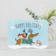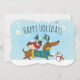 Trio de vacances adorable d'un dachshund, d'un chien pug et d'une poubelle bleue ;