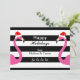 Deux flamants roses mignons utilisant des casquettes de Père Noël sur un arrière - plan rayé noir et blanc, décorent cette carte de vacances d'amusement, rendant lui parfaits pour ceux dans un emplacement tropical, ou ceux souhaitant qu'ils aient étés. Des articles coordonnés supplémentaires peuvent être trouvés dans la collection de vacances de Flamant rose de La de La de La de fa.