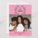 Carte de Noël familiale personnalisée avec couronne de laurier floral et arrière - plan rose menthe poivrée. Carte de voeux moderne et design. Personnalisez avec votre nom de famille et votre année de vacances.
