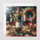 Ce magnifique dessin de vin de Noël dans un cadre magnifique de lumières et de bougies de Noël brillantes répandra la joie de Noël à tous ceux qui reçoivent cette carte de Noël. Le étiquette de la bouteille de vin dit "Joyeux Noël".