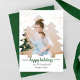 Cette carte de vacances pour la coupe d'arbres de Noël d'Anton Design Co vous présente une belle photo de vous et de votre famille derrière un découpage de trois arbres de Noël brossés de couleur eau.