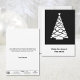 Le minimaliste Black & White Christmas Tree Business Holiday Card modèle est une façon exquise d'envoyer des voeux de vacances sincères à vos clients chéris. Faisant partie de la collection Black & White Cartes de visite & Marketing Items, cette carte de style portrait exhale le raffinement avec son arbre de Noël dressé contre un arrière - plan noir encadré de blanc. Sous une police moderne trouvez des salutations de saison personnalisables. Le dos de la carte est conçu pour la personnalisation, présentant du texte noir sur un arrière - plan blanc avec suffisamment d'espace pour un nom et une signature manuscrits, ajoutant une touche chaleureuse avec une note de remerciement attentive. La bordure inférieure est adaptée au logo, au numéro de téléphone et à l'adresse de votre entreprise, tandis que la section centrale met en évidence les icônes de courriel et de site Web pour faciliter la consultation. A droite, les icônes des médias sociaux avec la phrase "Connectez-vous avec nous" encouragent les clients à s'engager avec votre entreprise en ligne, complétant la communication joyeuse de vacances. Pour plus d'idées d'image de marque, visitez le site www.KBMD3signs.com ou contactez info@KBMD3signs.com pour obtenir de l'aide sur la personnalisation, le transfert de conception ou une demande de conception personnalisée.