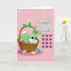 Ce dessin représente un lapin de dessin animé d'un vert lime vif qui regarde hors d'un panier marron tressé rustique, donnant à la scène une atmosphère amicale et affectueuse 🐰. Ses grands yeux foncés et son nez rose sont dessinés avec une tendresse et une douceur, comme s'il se penchait en avant pour saluer quelqu'un qui lui est cher. De longues oreilles dressées encadrent son visage, et une petite queue blanche et duveteuse apparaît juste au-dessus du bord du panier. Un nœud en forme de feuille de la même couleur verte décore le panier, reliant le personnage et le décor. Autour et à l'intérieur du panier sont disposées des formes d'œufs rayées en violet, jaune, bleu clair et vert, dispersées comme de petites surprises d'une recherche printanière 🌷. Le fond est d'un rose atténué avec des motifs circulaires en couches légères qui ajoutent une texture douce sans détourner l'attention de la figure principale. Sur le côté droit, un vœu saisonnier apparaît en sarcelle avec des accents de vert fon