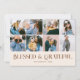 Merci chaleureusement à l'Express cette Thanksgiving avec notre carte magnifiquement conçue, conçue pour mettre en valeur des souvenirs chéris. Le devant présente un collage photo de huit images, capturant des moments spéciaux qui reflètent votre gratitude. En dessous de cet écran, le salut "Blessed & Grateful" est écrit avec élégance dans une police serif rétro décorative, ajoutant une touche classique à vos souhaits chaleureux. Au dos, ajoutez quatre photos supplémentaires et personnalisez avec votre propre message pour rendre ce salut vraiment unique. Cette carte de Thanksgiving est parfaite pour partager votre gratitude et votre joie avec vos amis et votre famille.