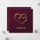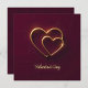Deux cœurs qui se chevauchent avec un contour doré sur un fond rouge foncé, avec un effet de