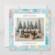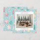 Carte de vacances présentant de mignonnes illustrations sur le thème de Noël dans une palette de couleurs pastel avec une photo de famille associée à un vœu de vacances et votre nom et année dans une police sans empattement.