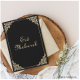 Carte de vacances Eid Moubarak. Carte de couleur noire élégante avec une décoration vintage dans le cadre. Un design de luxe à envoyer à la famille et aux amis musulmans pour l'occasion islamique de l'Aïd al-Fitr. Personnalisez toutes les informations qui sont écrites. Enveloppe blanche incluse.