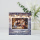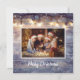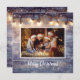 Carte de vacances en bois rustique de type String Light. Envoyez vos salutations de la saison avec cet arrière - plan rustique en planches de bois et lampes à cordes au-dessus de la photo de famille. Avant a une zone pour votre texte, arrière a des zones pour les salutations et les noms de famille.