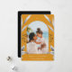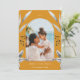 Cadre photo en arc de feuillage monochrome moderne, carte de vacances familiale en jaune rustique et vert forêt.