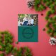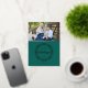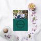 Cette carte de vacances comporte une feuille de papier et un texte sur un arrière - plan vert riche. Customisez avec l'année, votre nom et une photo. Photo de Katie Soyka Photography.